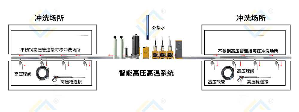 通過場所平面圖,選中合適位置布局智能高壓高溫主機(jī),外接水通過主機(jī),向各個(gè)場所供應(yīng)高壓高溫水,并且可以實(shí)現(xiàn)物聯(lián)網(wǎng)控制主機(jī)啟動(dòng),員工只需攜帶高壓軟管和高壓水槍就可以作業(yè),各個(gè)場所可以同時(shí)作業(yè),提高工作效率,無觸電風(fēng)險(xiǎn)!